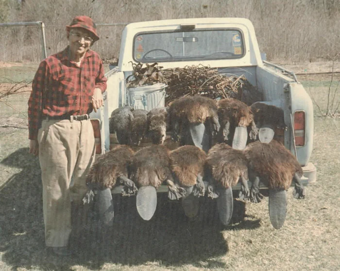Pictured at the right, Octave’s wife was an accomplished amateur photographer and won a photo contest with this picture of her husband returning from a good day of trapping with eight beaver and three otter.
